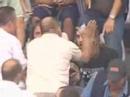Notevole anche la presenza della bionda a suo fianco. Fidanzata? Amica? Sorella? Non si sa, ma certo è che suo malgrado anche lei ha bucato lo schermo. Apparentemente innocua e pure fine, distinta, abbigliata in modo sobrio, senza fasce né magliette, è stata immortalata nel difendere il suo indifendibile compagno contro l’eccessiva foga del vendicatore schiaffeggiante. Non mi stupirei di rivederla prossimamente da Mentana o magari dalla Ventura, impegnata nella discussione sull’episodio.