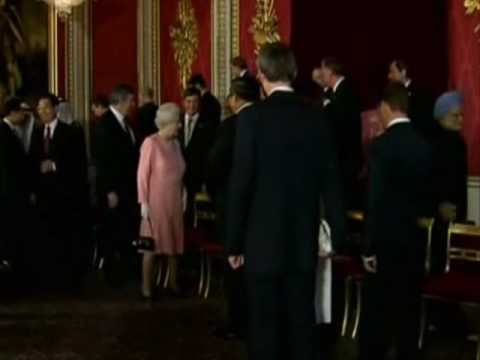 Foto ricordo di gruppo, dopo la visita dei leader del G20 a Buckingham Palace. Silvio Berlusconi dietro Barack Obama. “Mister Obama, mister Obama!“, chiama